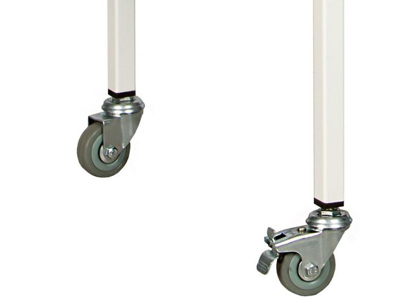 • столик процедурный имеет 4 колеса из немаркой серой резины D= 50 мм, два из которых снабжены тормозом