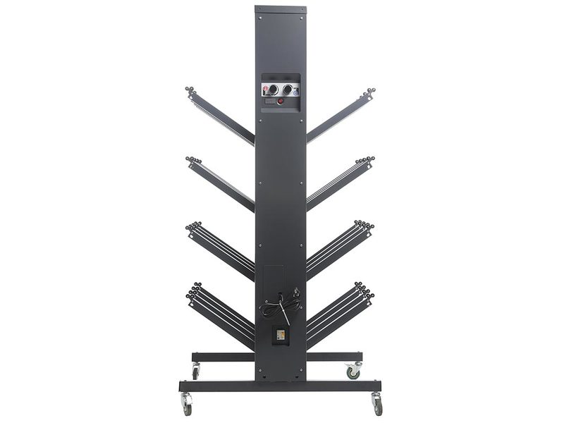 • Для удобства перемещения стойка снабжена резиновыми колесами, диаметр 75 мм (2 колеса поворотные со стопором, 2 колеса поворотные).
