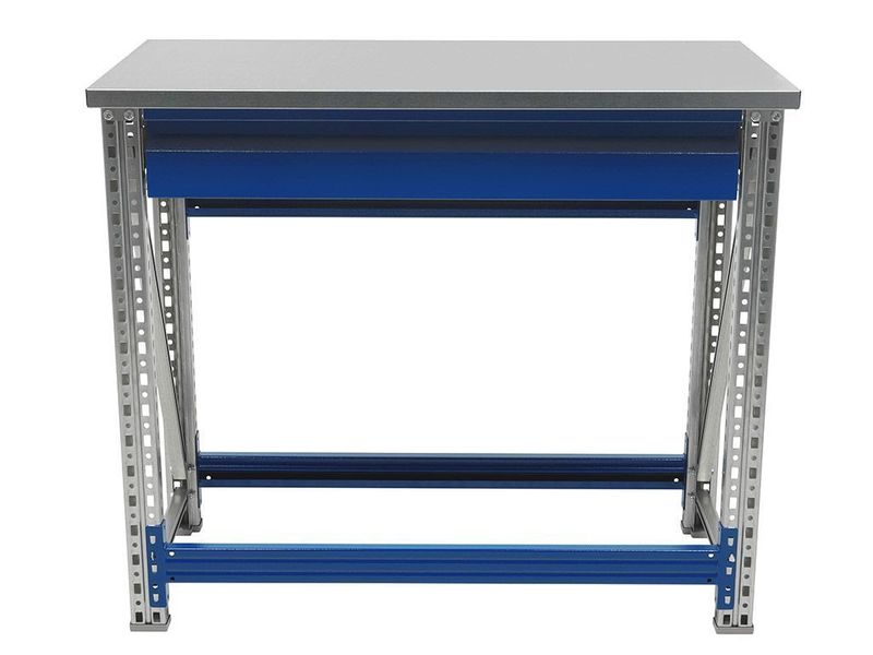 - Возможность дополнить верстак полкой (нагрузка 100 кг) и выдвижным ящиком (нагрузка 30 кг).