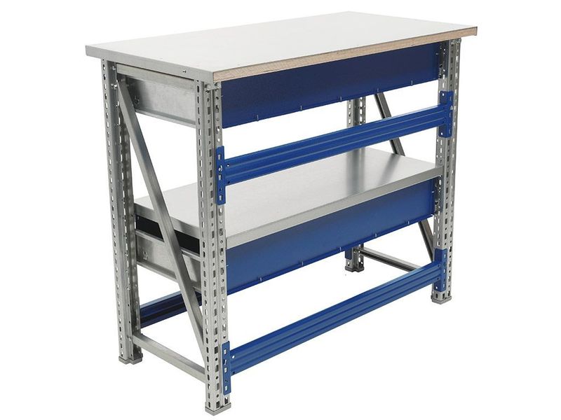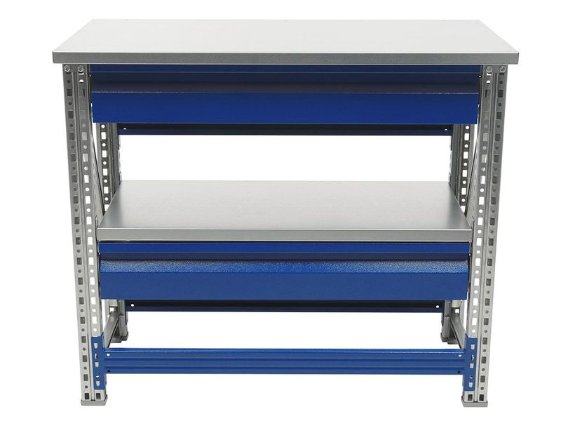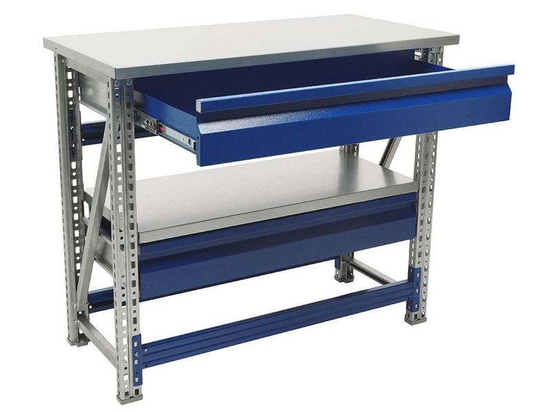 • Возможность дополнить верстак полкой (нагрузка 100 кг) и выдвижным ящиком (нагрузка 30 кг).