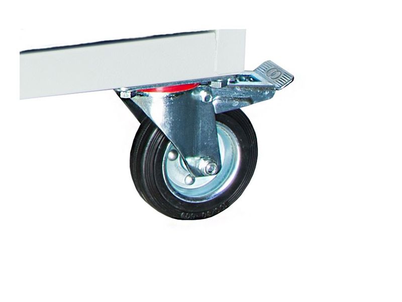 - комплектуются удобной ручкой и резиновыми колесами (диаметр 100 мм), 2 - неповоротных, 1- поворотное, 1 - поворотное с тормозом